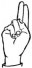 На ћирилици написано ЕВГЕНИЈЕ РАДОСАВЉЕВИЋ састоји се из 20 слова [?]. Исписано ћириличном једноручном азбуком за глувонеме: